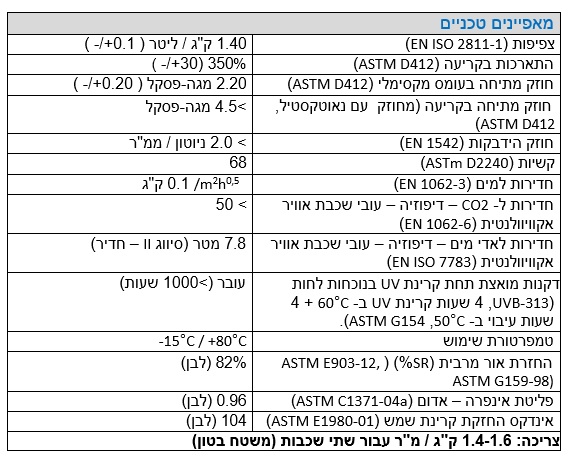 למוצר תכונות ייבוש מהיר כשעתיים, בין השכבות ובנוסף עמידות מוקדמת לגשם.